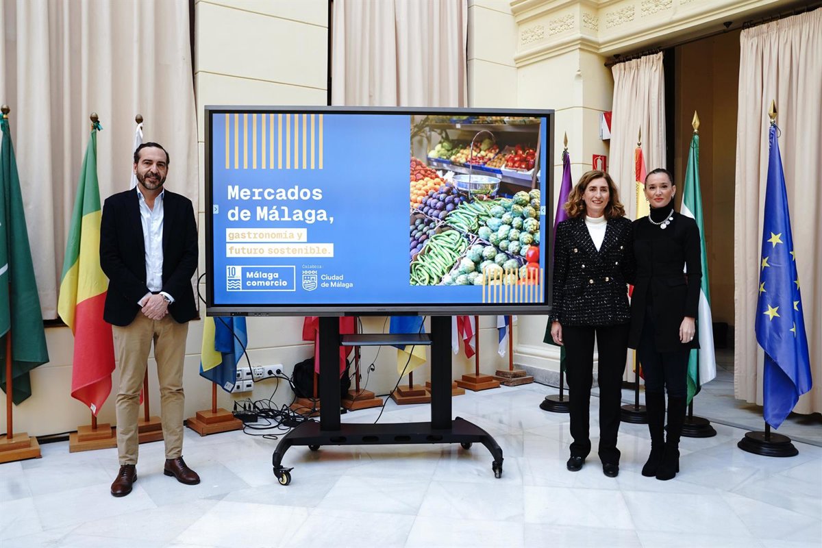 La concejala delegada de Comercio, Vía Pública y Fomento de la Actividad Empresarial del Ayuntamiento de Málagas, Elisa Pérez de Siles, junto a la presidenta de la Federación del Comercio de Málaga, Lorena García, han presentado este jueves la campaña 'Mercados de Málaga, gastronomía y futuro sostenible' promovida por Málaga Comercio con la colaboración del Consistorio.