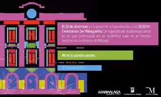 La campaña 'ADNMálaga, orgullosos de lo nuestro', que desarrollan la Diputación de Málaga, con la colaboración el Ayuntamiento de Málaga para promover valores culturales y de cohesión social, invita a los malagueños a realizar un viaje en el tiempo por la historia de la provincia, con un espectáculo de 'video-mapping' que recorrerá Málaga desde la antigüedad hasta nuestros días.