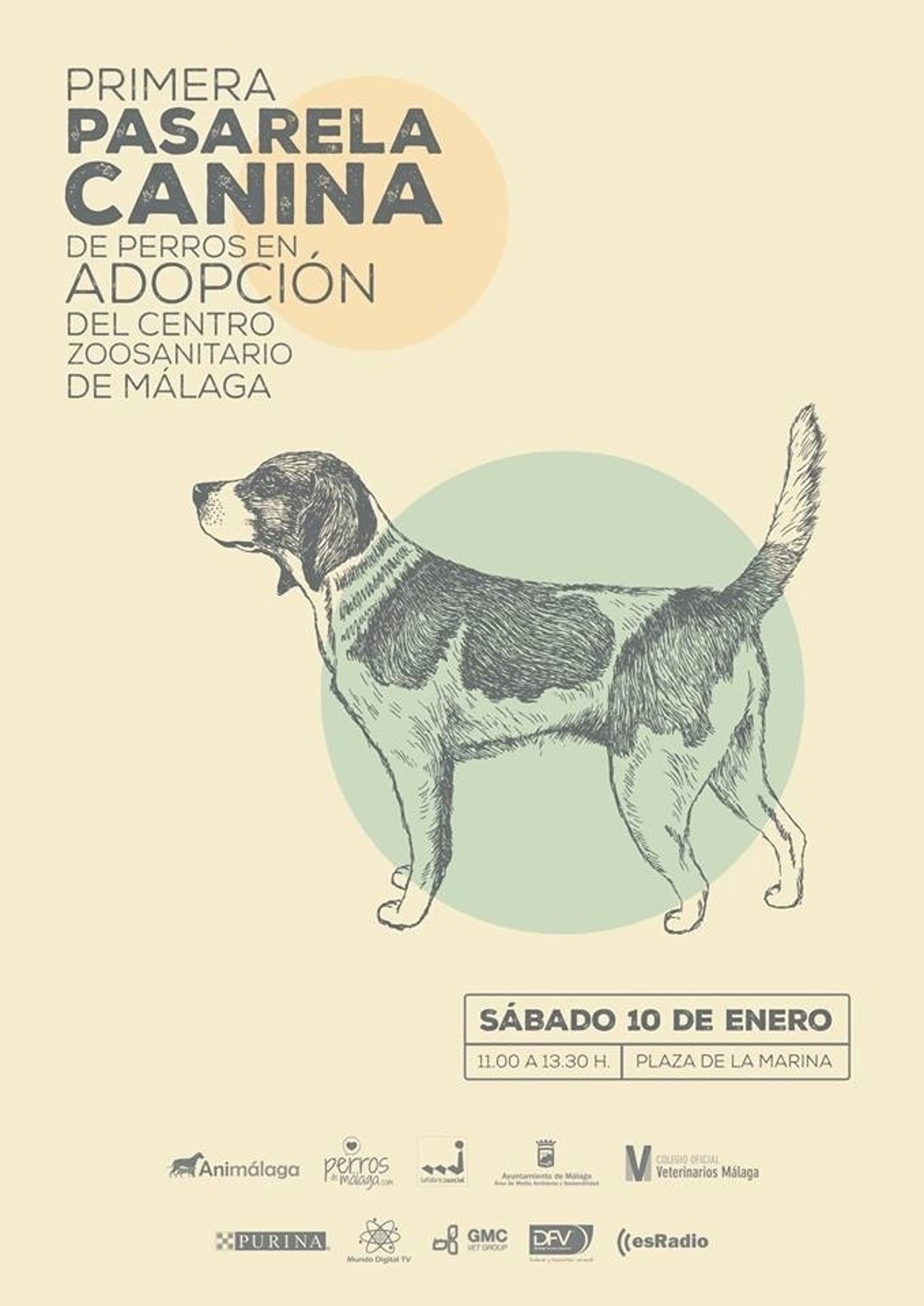 La plaza de la Marina de la capital malagueña acogerá este sábado un desfile protagonizado por perros del Centro Zoosanitario Municipal que están en situación de adopción.