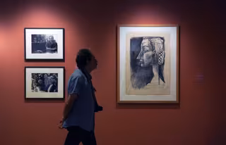 Posteriormente, se exhibe 'Tiempos de guerra', que abarca dos conflictos: la Guerra Civil española y la Segunda Guerra Mundial, sección que arranca con la pieza más valiosa de la exposición, un retrato al óleo de Dora Maar procedente de la colección del Museo Nacional Centro de Arte Reina Sofía en Madrid. Y es que fue su compañera sentimental quien contribuyó decisivamente a alentar la conciencia política del pintor en esos años convulsos.