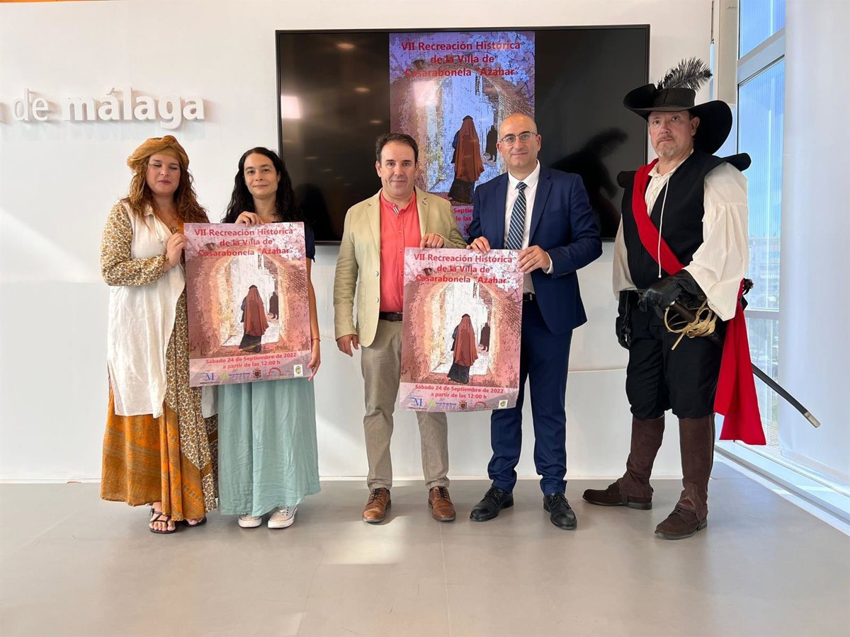 Así lo ha anunciado el diputado de Cultura, Manuel López Mestanza, junto al alcalde de Casarabonela, Antonio Campos, y Elena Gutiérrez y Juan Mariano Pacheco en representación de la Asociación Cultural Casarabonela Historia Viva, en la presentación de la programación de la recreación histórica.