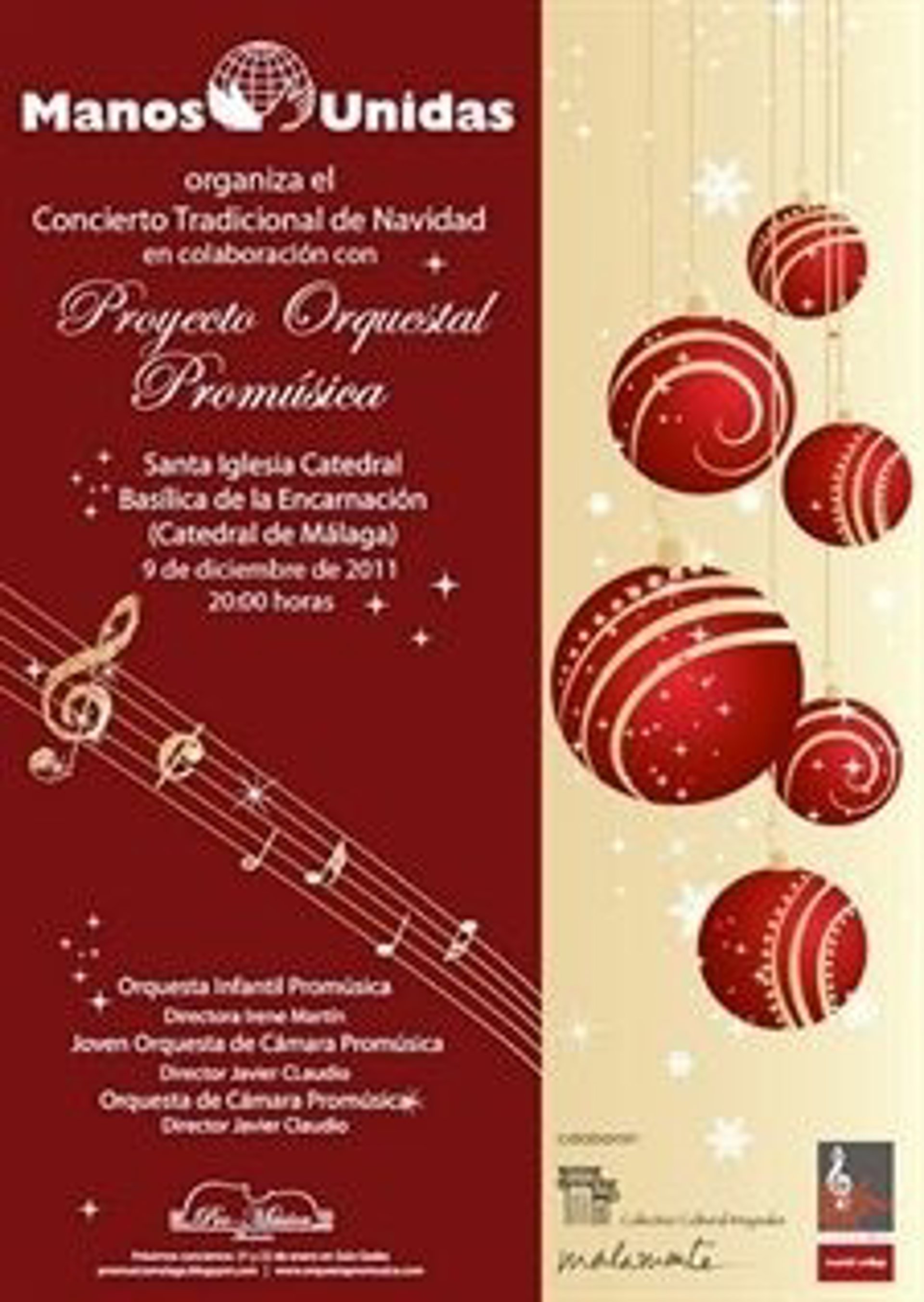 El concierto será ofrecido por las orquestas de cámara que conforman el proyecto Promúsica, dirigidas por Javier Claudio, catedrático de Violín en el Conservatorio Superior. Este programa formativo, dirigido a los tres grados de la carrera musical --elemental, profesional y superior--, se inició en 2009 a través del impulso de la Fundación Musical de Málaga.