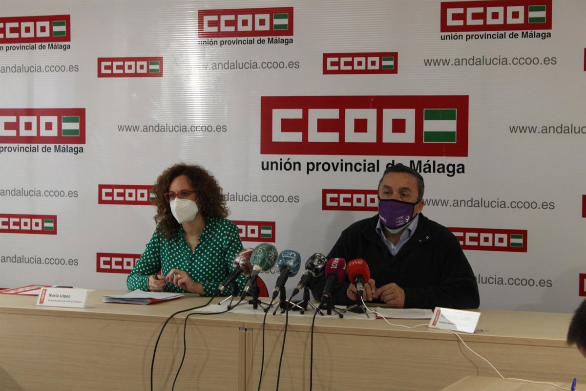 Fernando Cubillo, secretario general de CCOO en Málaga, y Nuria López, secretaria general de la organización en Andalucía, en rueda de prensa en la sede de la capital malagueña - CCOO MÁLAGA