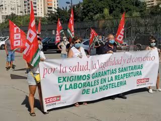 Representantes sindicales del sector de la hostelería malagueña se han concentrado en la mañana de este jueves en la entrada del edificio de Usos Múltiples, bajo el lema 'Por la salud, la legalidad y el convenio', criticando las "deficiencias" en el regreso a la actividad del sector y reclamando una especial actuación desde la Inspección de Trabajo.