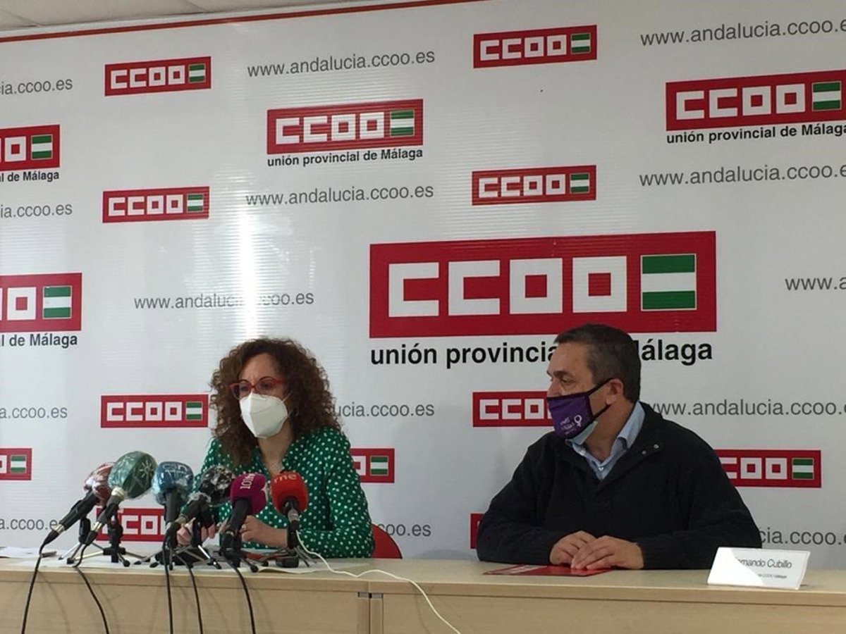 Nuria López, secretaria general de CCOO en Andalucía, y Fernando Cubillo, secretario general de CCOO Málaga, en rueda de prensa - EUROPA PRESS