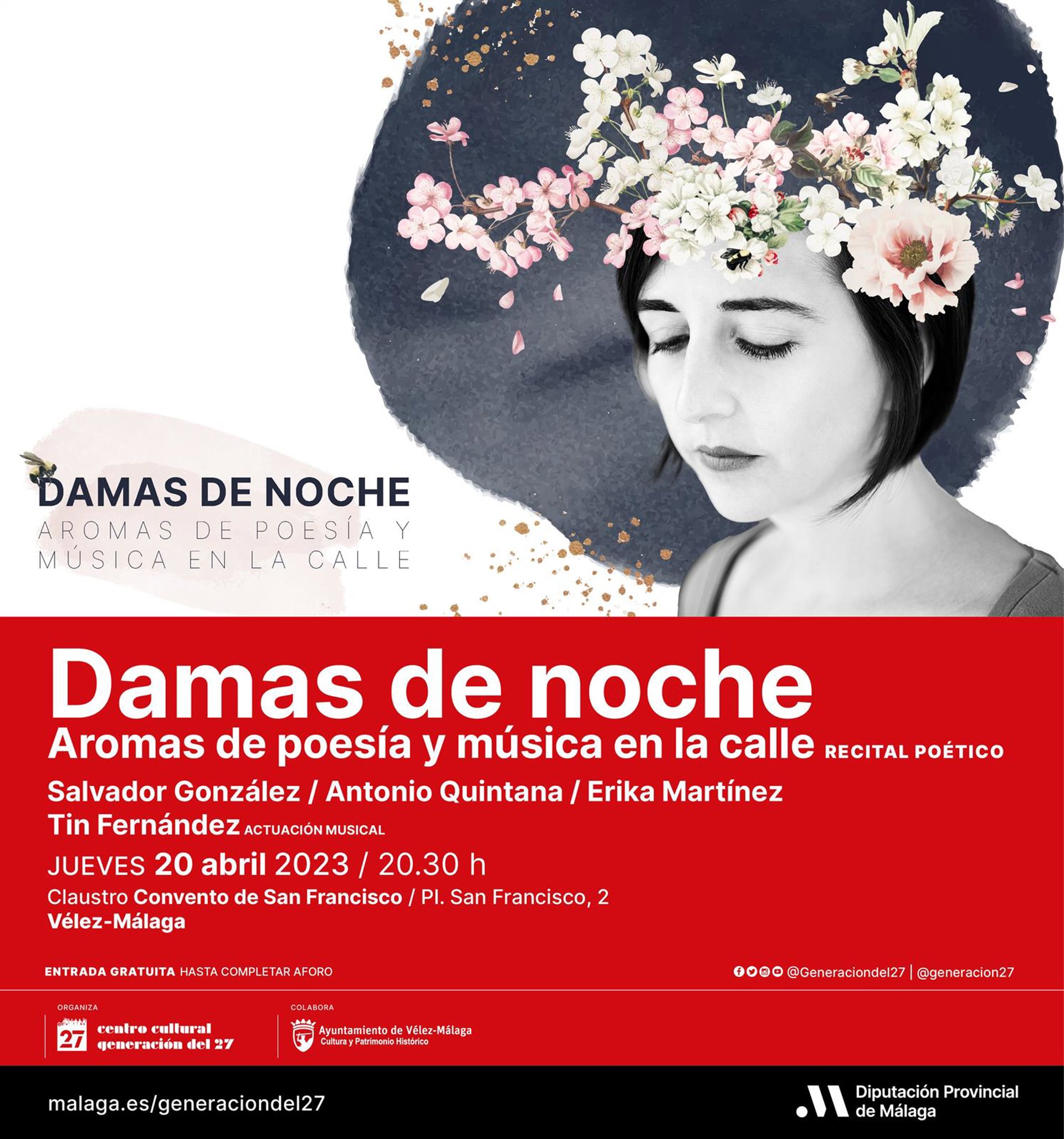 Este jueves, 20 de abril, se celebrará en Vélez-Málaga una nueva cita del ciclo 'Damas de noche: aromas de poesía y música en la calle' con entrada gratuita para el público asistente. - DIPUTACIÓN DE MÁLAGA