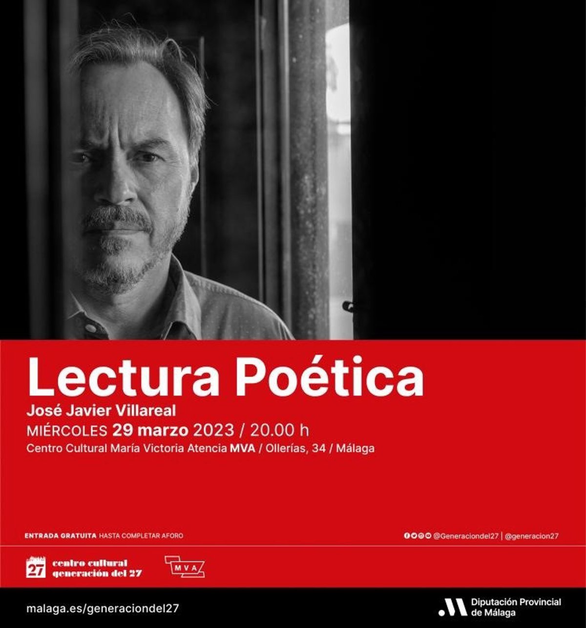 El Centro Cultural Generación del 27 de la Diputación de Málaga recibe este miércoles en el centro cultural María Victoria Atencia MVA al poeta mexicano José Javier Villarreal, que leerá una selección de sus poemas. La cita va a tener lugar a partir de las 20.00 horas con entrada libre hasta completar aforo.
