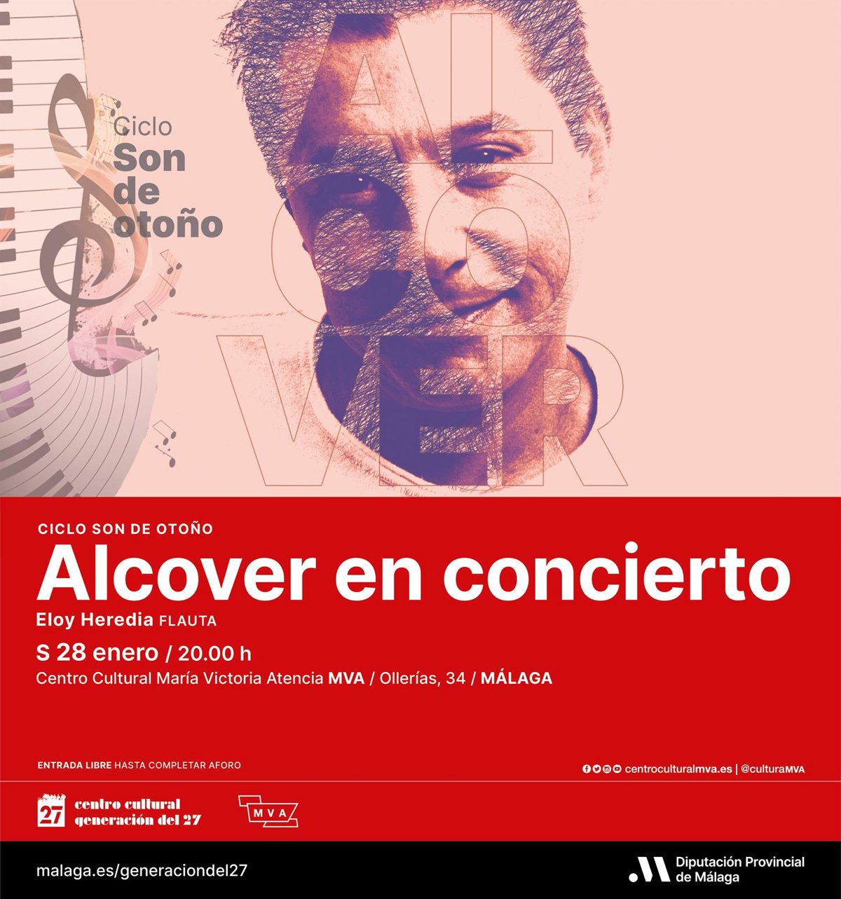 Cartel del concierto que Daniel Alcover protagoniza este sábado en el centro cultural MVA. - DIPUTACIÓN DE MÁLAGA