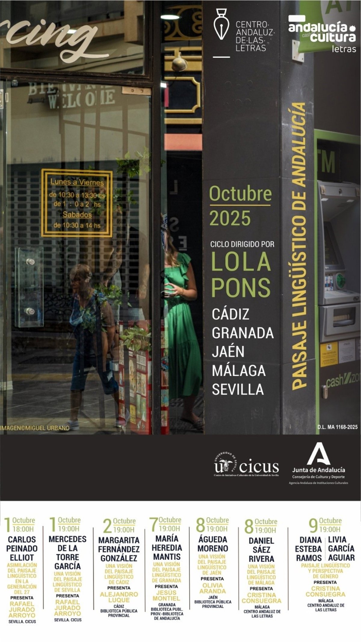 El Centro Andaluz de las Letras (CAL), dependiente de la Consejería de Cultura y Deporte y gestionado a través de la Agencia Andaluza de Instituciones Culturales (Aaiicc), organiza un ciclo, bajo la dirección de la catedrática de la Universidad de Sevilla Lola Pons Rodríguez, con el objetivo de profundizar en el conocimiento sobre las lenguas y culturas de Andalucía a través de la observación de sus espacios públicos.