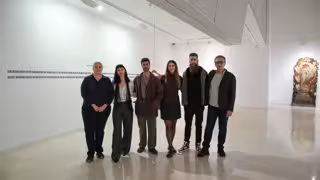 La directora artística CAC Málaga, Helena Juncosa, junto a Lucía OBrien, Jose Casas, María Fernández y Alejandro Cantalejo, y al decano de Bellas Artes Jesús Marín. - CAC MÁLAGA
