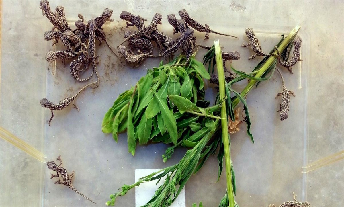 Tras el nacimiento múltiple, en el que se estima el 100 por cien de los huevos eclosionados, los pequeños camaleones están siendo alimentados de moscas drosófilas y microgrillos.