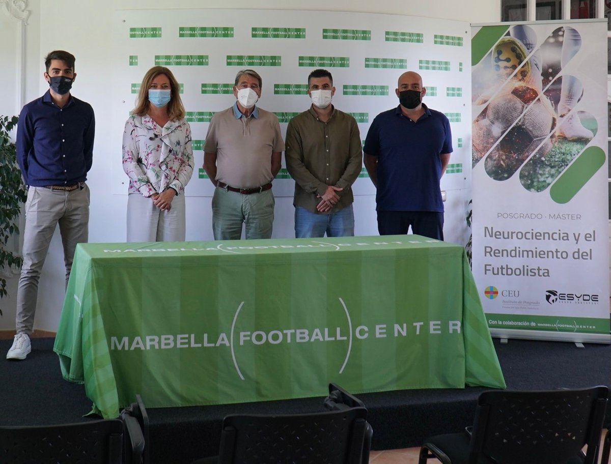 La presentación de la primera edición ha tenido lugar en las instalaciones del Marbella Football Center, asistiendo la directora del Instituto de Posgrado CEU, María Luisa Ríos; el responsable de marketing y comunicación, Ignacio Ferrer; el copropietario del Marbella Football Center, Enrique Pérez Serichol; el gerente de Esyde Formación, Lamberto Conde; y el coordinador del máster, David Pérez Caro.