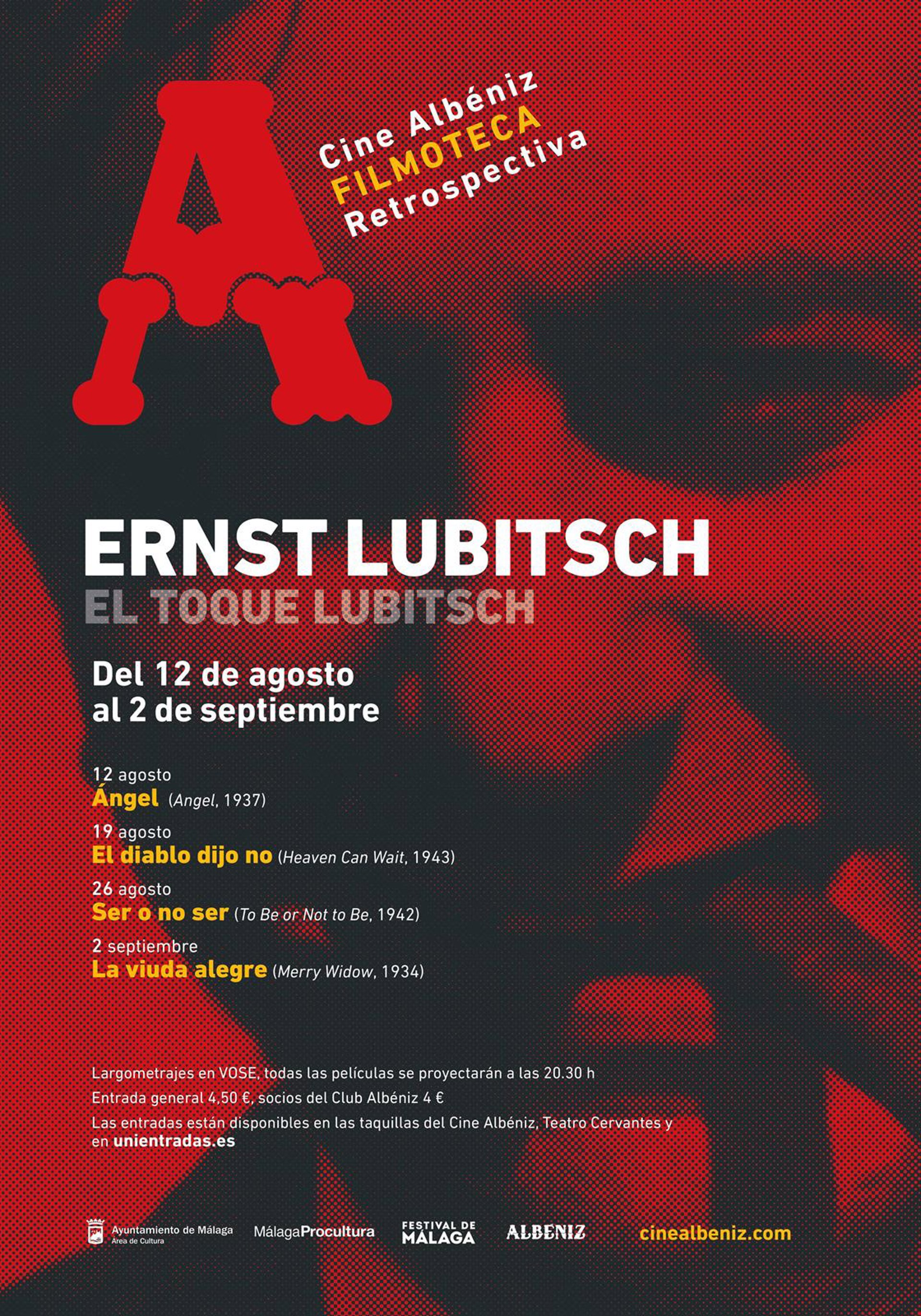 Todas las películas del ciclo dedicado a Ernst Lubitsch se podrán a partir de las 20.30 horas con un coste de cuatro euros para socios del Club Albéniz y 4,5 euros para el resto. Las entradas están disponibles en las taquillas del propio cine, en el Teatro Cervantes y a través de la plataforma www.unientradas.es.