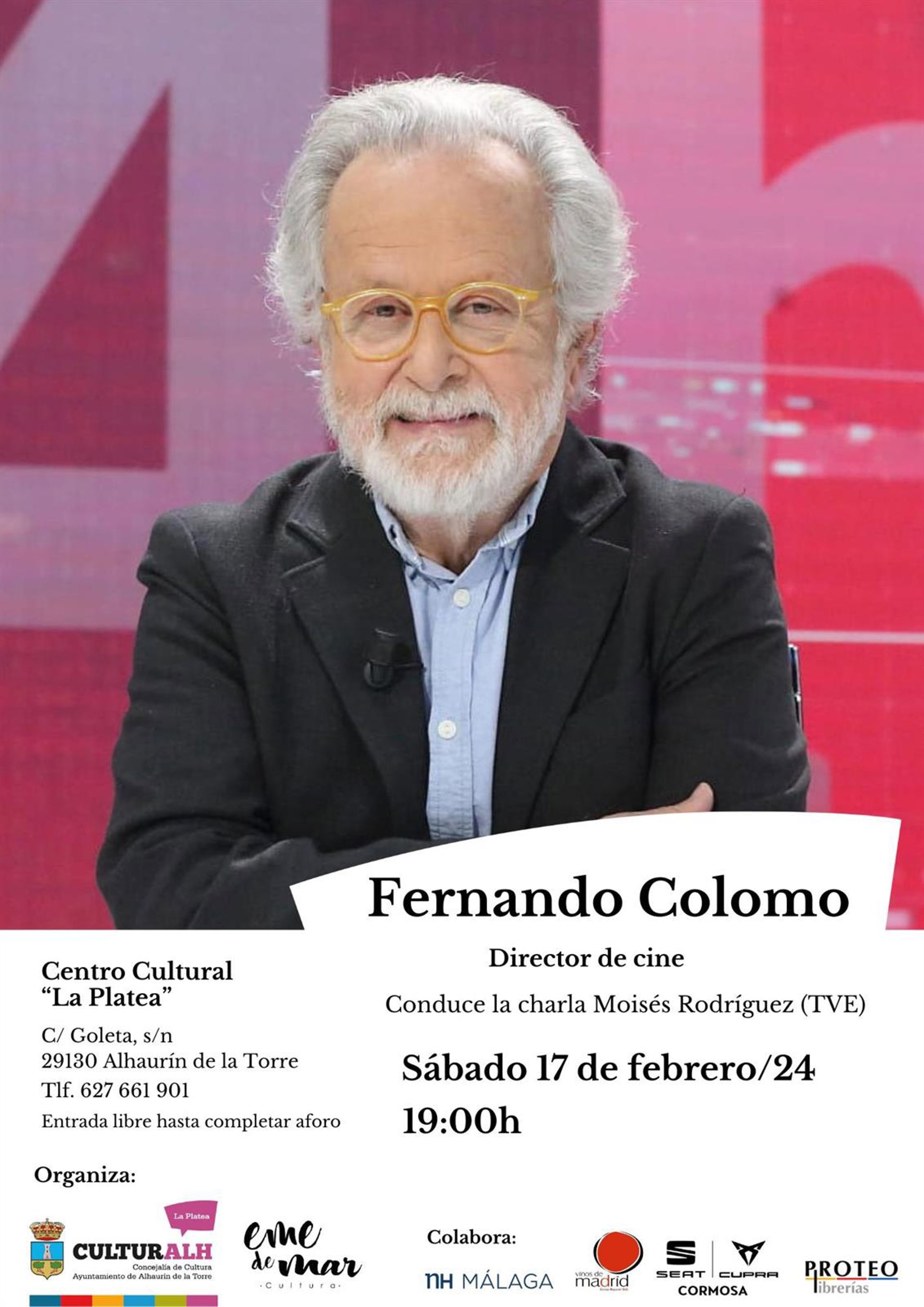 Las charlas en el Centro Cultural La Platea de Retamar del municipio malagueño de Alhaurín de la Torre, organizadas por el Área de Cultura en colaboración con Eme de Mar Cultura, tendrán a Fernando Colomo como próximo invitado en un diálogo con el periodista y presentador de Canal 24 Horas de RTVE, Moisés Rodríguez.