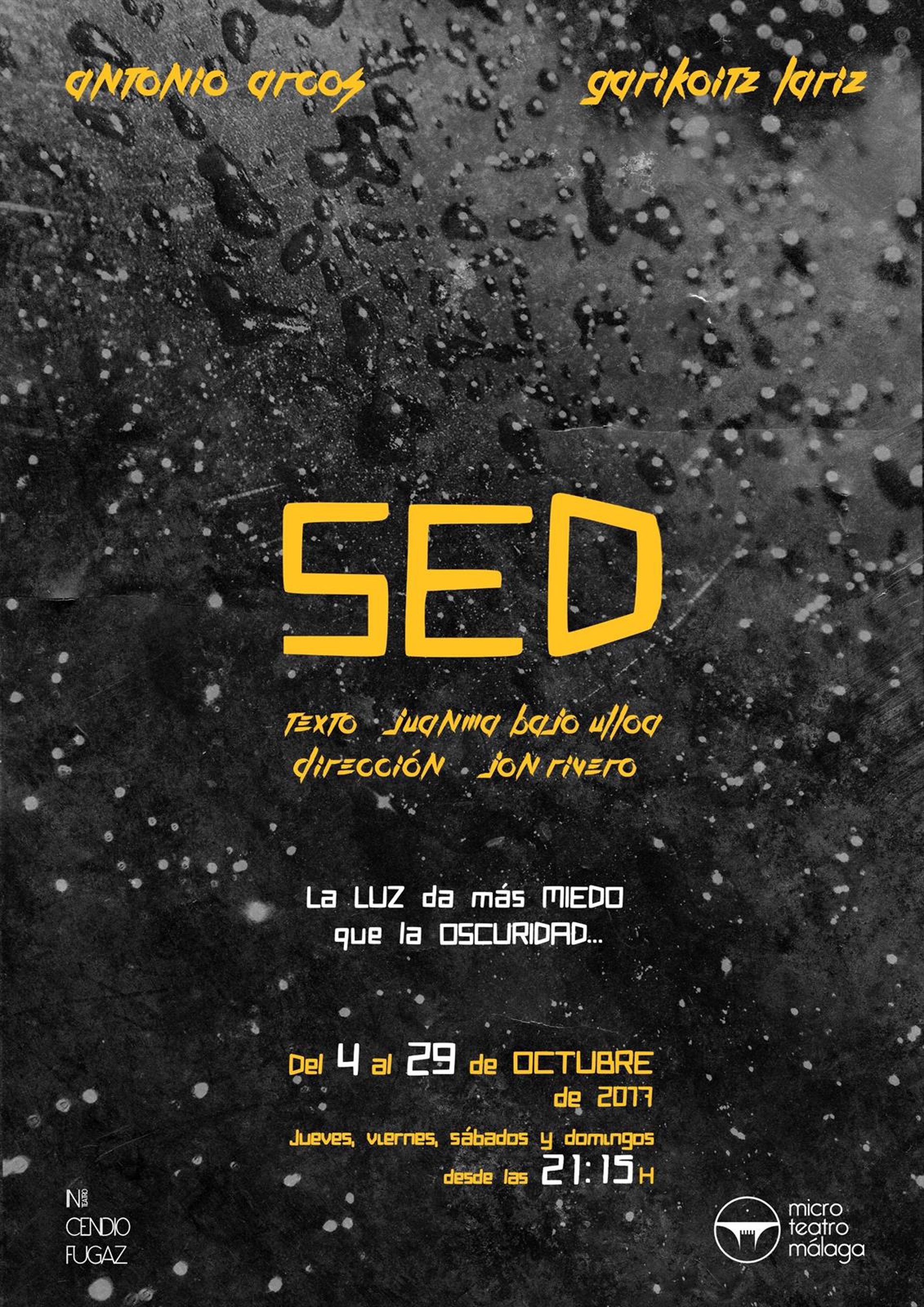 'Sed', dirigida por Jon Rivero y protagonizada por Antonio Arcos y Garikoitz Lariz, narra cómo un invidente se encuentra en medio del desierto con un hombre asustado y sediento que le pide ayuda, según han informado a Europa Press desde Microteatro Málaga.