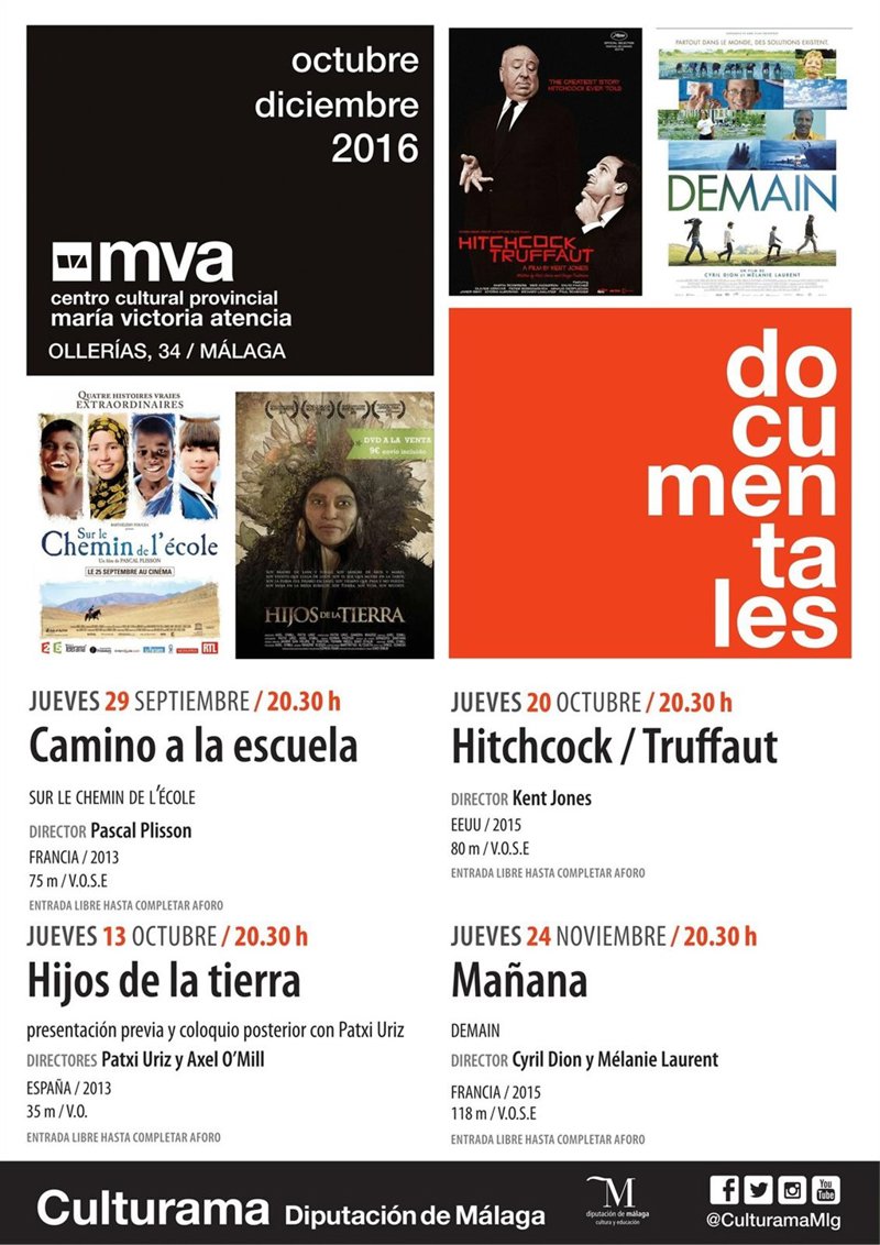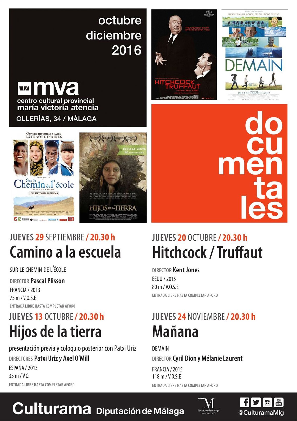 Por otro lado, Culturama sigue haciendo hincapié en las artes audiovisuales con el ciclo de documentales en el Centro Cultural Provincial María Victoria Atencia de la capital malagueña. Para este periodo las piezas escogidas han sido cuatro: 'Camino a la escuela', 'Hijos de la Tierra', 'Hitchcock/Truffaut' y 'Mañana'.