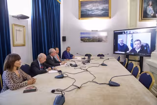 De la Torre, acompañado por la concejala de Acción Exterior, Ruth Sarabia; el responsable de la Red Global Cifal, Álex Mejía; el presidente del directorio de Unitar, Luis Gallegos; y el director de Cifal Málaga, Julio Andrade; ha mantenido este martes una reunión telemática con los alcaldes de Plock (Polonia), Andrzej Nowakowsky, y Zhytomyr (Ucrania), Serhij Suchomlyn.
