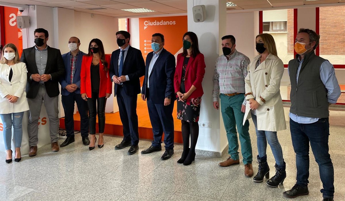 Archivo - El líder de Cs Andalucía, Juan Marín, junto a cargos institucionales del partido en la provincia de Málaga, en una imagen de archivo - CS - Archivo