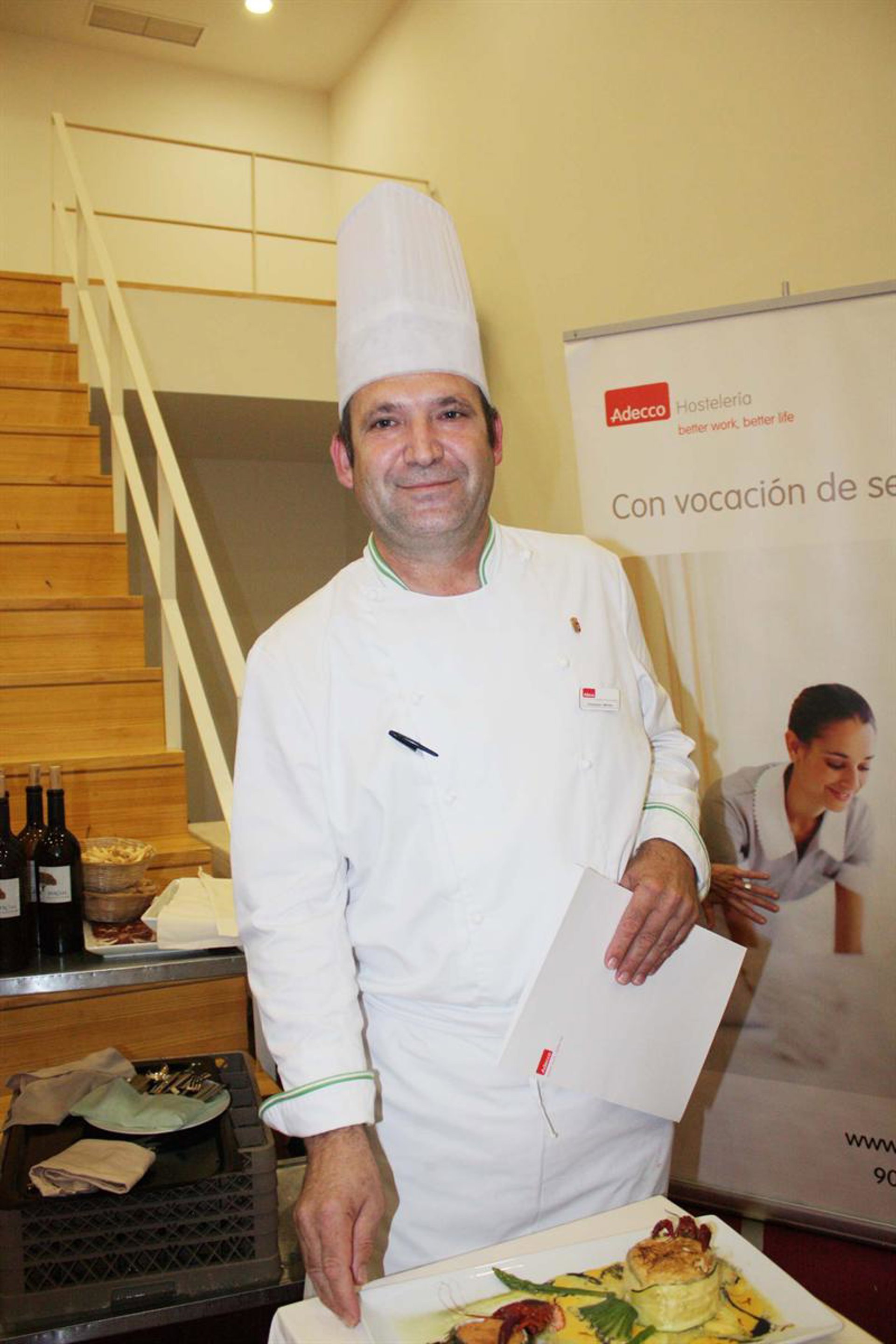 El malagueño Francisco Gálvez ha ganado el concurso de mejor chef de Adecco Hostelería de Andalucía con el plato medallón de merluza rellena de cangrejos de río y erizos de mar, glaseado con aceite de oliva al aroma de ajos, salsa de azafrán y cordón de tinta de calamar.