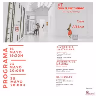 Tras la inauguración oficial, a cargo del decano de los letrados malagueños, Francisco Javier Lara, se proyectará dicha comedia del director Pietro Germi, un clásico del año 1961 protagonizado por Marcello Mastroianni, Daniela Rocca, Stefania Sandrelli, Lando Buzzanca y Leopoldo Trieste.