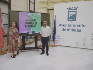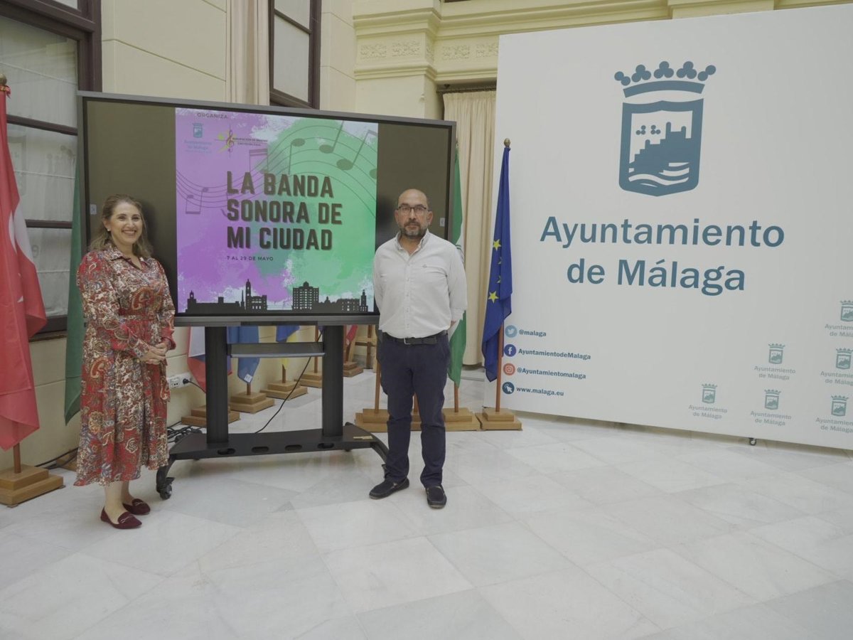La concejala del Área de Educación, Juventud y Fomento del Empleo, María Paz Flores, y el presidente de la Agrupación de Bandas de Música Procesional de Málaga, José Vela, han presentado este martes la programación del mes de mayo del ciclo 'La Banda Sonora de mi Ciudad' que ofrecerá conciertos de las bandas en distintas barriadas de Málaga con el objetivo de visibilizar la labor que realizan.