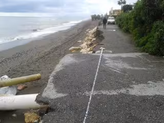 Como consecuencia de las fuertes y abundantes precipitaciones del 4 de diciembre, se produjeron daños a lo largo de toda la franja litoral de la provincia provocando escorrentías, arrastres y pérdidas de perfil, además de daños en mobiliario y pérdidas de materiales en playas, entre otras cosas.