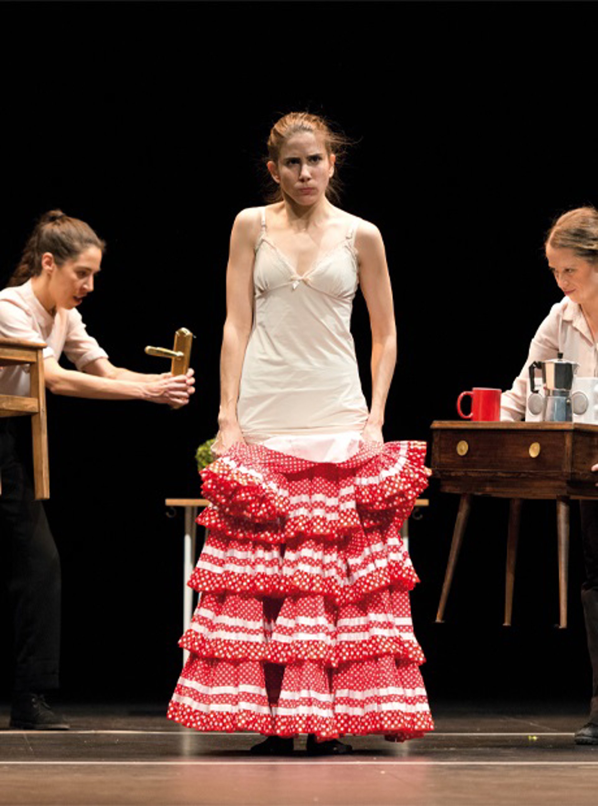 Está representada por las intérpretes Ariana Cárdenas, Andrea Jiménez, Esther Ramos y Noemí Rodríguez; Mónica Faro es la voz en off; David Roldán y Germán Gundín se encargan de la iluminación; César Lucas de la fotografía; Ione Oleaga y Goerge Couyas del diseño gráfico; Bonafide del video; Teatro en Vilo de la producción, e Isis Abellán - Proversus de la distribución.