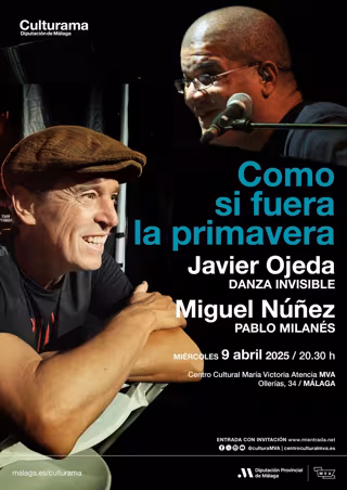 Javier Ojeda y Miguel Núñez ofrecerán tres conciertos creados en exclusiva para la Diputación de Málaga en los que rendirán homenaje a Pablo Milanés. Bajo el título 'Como si fuera la primavera', verso del tema 'Canción' de Milanés, actuarán el 9 de abril, a las 20.30 horas, en el MVA; el 11 en el Palacio de la Paz de Fuengirola; y la última parada será el 4 de mayo, a las 19.00 horas, el Teatro del Carmen de Vélez-Málaga. El 11 de abril, a las 19.30 horas, en la Catedral de Málaga actuarán la Joven Orquesta Provincial de Málaga, Coral Santa María de la Victoria y Coral Alminares de Nerja.