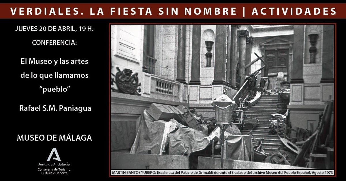 El Museo de Málaga acoge este jueves, 20 de abril, la conferencia 'El Museo y las artes de lo que llamamos 'pueblo'' a cargo del profesor e investigador de la Universidad Complutense de Madrid, Rafael S.M. Paniagua. La cita se enmarca en las actividades paralelas de la exposición 'Verdiales. La fiesta sin nombre' del artista, fotógrafo e investigador Jorge García Rojas Dragón.