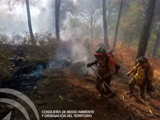 En la extinción del fuego permanece un operativo compuesto por cuatro vehículos autobombas, cinco grupos de especialistas, una unidad de meteorología y transmisiones, una unidad médica, agentes de medio ambiente y un técnico de extinción.