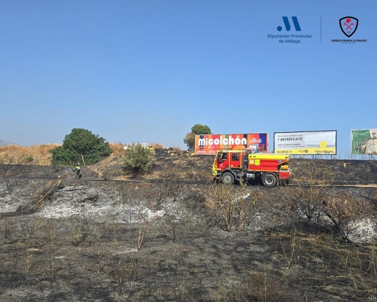 En torno a las 14.40 horas se dio el aviso que advertía del referido vehículo incendiado. El fuego se extendió hacia una zona cercana de pastos, por lo que al lugar se desplazaron dotaciones del Consorcio Provincial de Bomberos (CPB) de la Diputación tanto de Vélez como de los municipios vecinos de Rincón de la Victoria y Nerja.