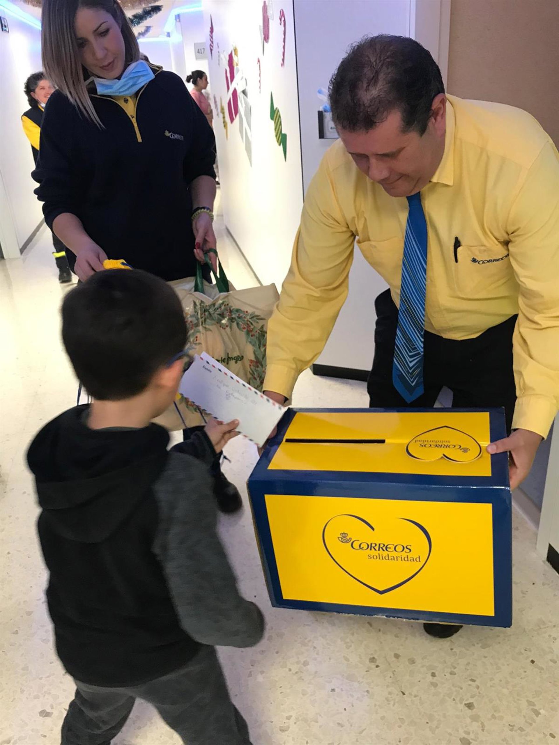 Una Navidad más, personal voluntario de Correos visita hospitales, residencias de mayores, centros de diversidad funcional o de acogida, para recoger las cartas dirigidas a los Reyes Magos de pequeños y mayores que permanecen ingresados. En concreto, en Málaga, han recogido las misivas en el Hospital Materno-Infantil y han entregado alimentos en el Asilo de las Hermanitas de los Pobres.