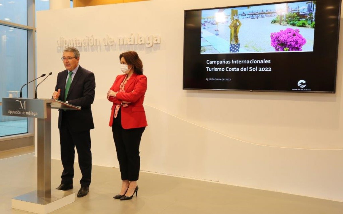 Francisco Salado, presidente de la Diputación y Turismo Costa del Sol, y Margarita del Cid, vicepresidenta primera y consejera delegada de Turismo Costa del Sol, en rueda de prensa - DIPUTACIÓN DE MÁLAGA