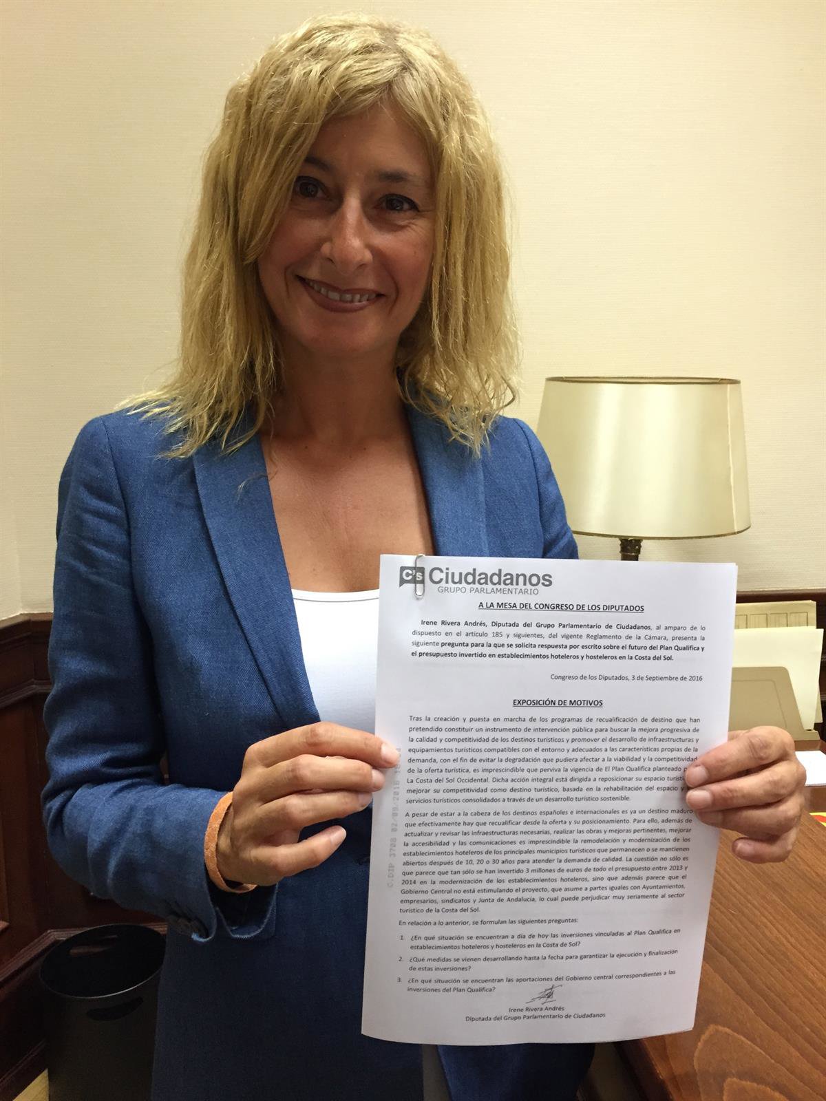 La diputada malagueña por Ciudadanos (C's) Irene Rivera ha reclamado en el Congreso un impulso al Plan Qualifica, ya que el grupo parlamentario teme que su parálisis afecte al sector turístico de Málaga.