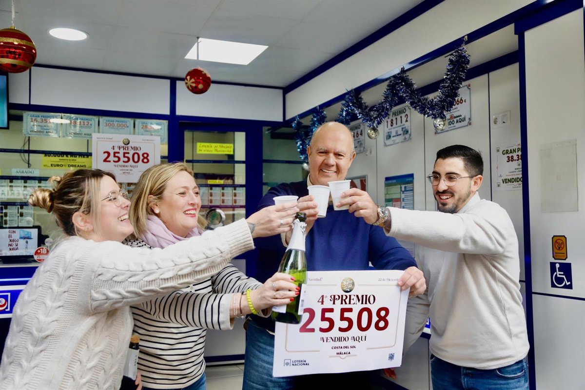 El segundo cuarto premio del Sorteo Extraordinario de la Lotería de Navidad, 25.508, ha repartido miles de euros este lunes en Málaga capital desde una administración ubicada en el popular barrio de Camino Suárez, donde una trabajadora recientemente incorporada está entre las tocadas por la fortuna, así como varios vecinos del lugar.