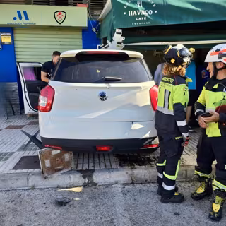 Los hechos han tenido lugar sobre las 09.40 horas. El 112 ha recibido casi una decena de llamadas alertando de que un vehículo se había salido de la carretera, había cruzado la acera y chocado contra la terraza de una cafetería en la avenida de la Axarquía del citado municipio malagueño.