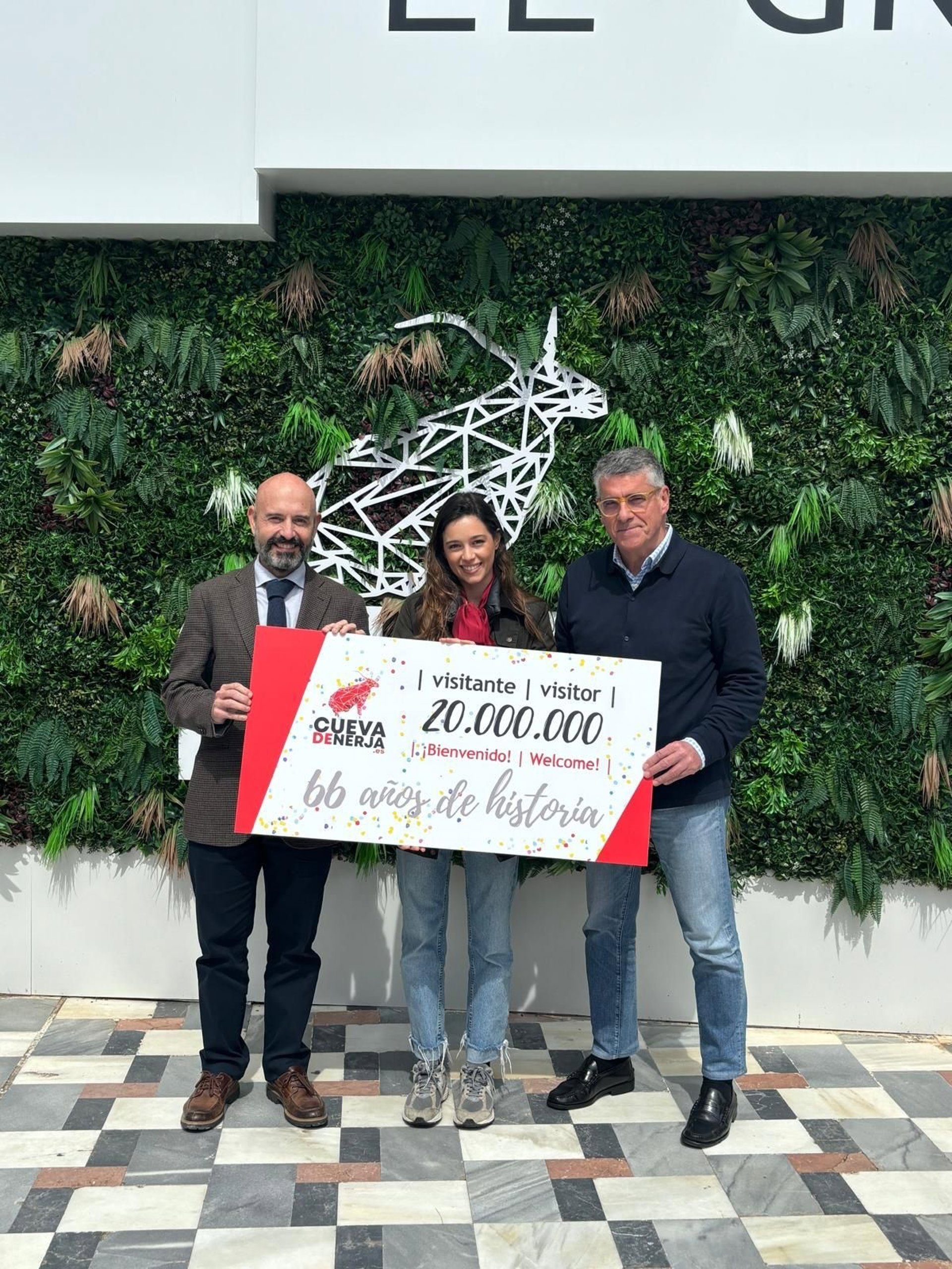 La Cueva de Nerja (Málaga) ha recibido este viernes a la visitante 20 millones en el recinto de la cavidad, una cifra a la que se llega tras 66 años de historia. Ha sido María Cutanda, que ha venido de Badajoz con su familia.