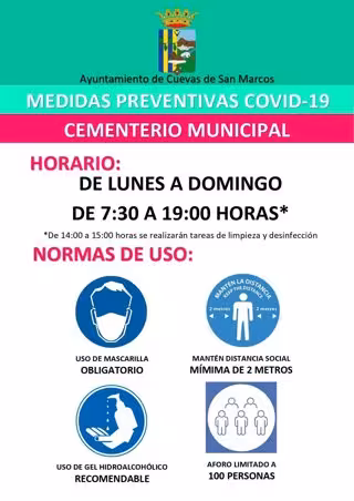 Como novedad sí ha explicado una serie de medidas y recomendaciones ante el Día de Todos los Santos, el próximo 1 de noviembre, de manera que se ampliará el horario del cementerio para que no haya acumulación de personas. De lunes a domingo será de 07.30 a 19.00 horas.