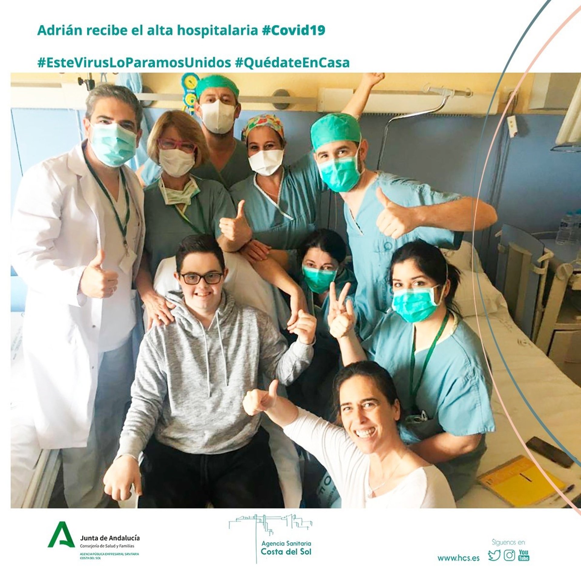 Adrián, de 23 años, que fue el primer paciente con coronavirus trasladado de la Unidad de Cuidados Intensivos (UCI) a planta de hospitalización en el Hospital Costa del Sol, en el municipio malagueño de Marbella, ha recibido el alta hospitalaria y ya está en casa.