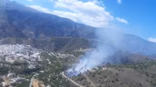 El dispositivo de extinción de incendios forestales de Andalucía, Plan Infoca, trabaja en un incendio declarado este viernes en el municipio malagueño de Canillas de Albaida.
