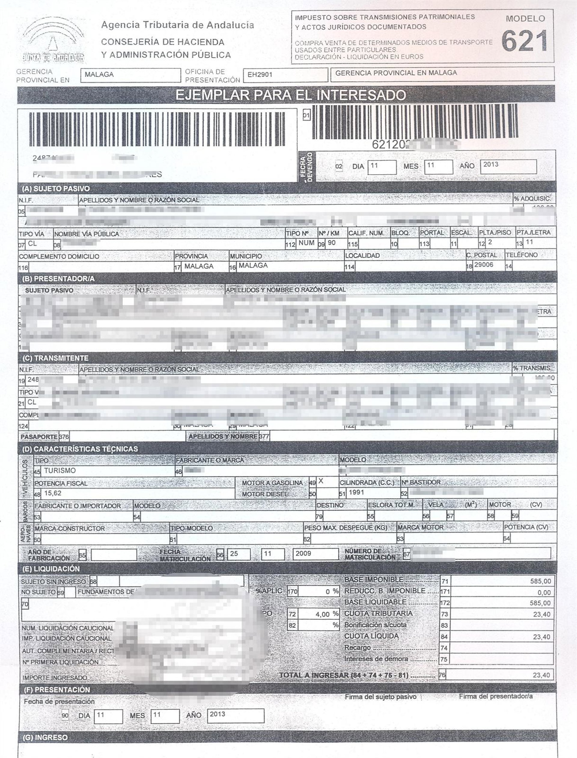 El fraude consistía en recortar del impresos del modelo la parte del importe a pagar en concepto de impuesto de transmisiones patrimoniales y actos jurídicos documentados de escaso valor y pegársela a cambios de titularidad de vehículos de alta gama que debían abonar un impuesto más alto, tal y como ha informado la Policía Nacional este domingo a través de un comunicado.