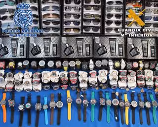 También se han realizado nueve registros domiciliarios en localidades de Málaga y Madrid, interviniéndose unos 100.000 euros en metálico, 526 terminales móviles, 513 relojes, más de 200 gafas de sol y alrededor de 80 bolsos y carteras de una conocida firma de lujo española, valorados en unos 900.000 euros, así como material para cometer robos. De igual modo, se han recuperado cinco vehículos sustraídos.