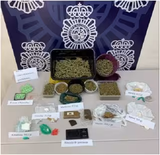 Durante el operativo policial se ha practicado un registro en la vivienda de la detenida, incautando, para sorpresa de los investigadores, una gran variedad de sustancias estupefacientes: 84,86 gramos de MDMA, 15,4 gramos de cocaína, 9,9 gramos de 'speed', 120 gramos de hachís, 181 pastillas de éxtasis, 972 gramos de marihuana, 33,9 gramos de polen de hachís, 99,61 gramos aceite de hachís y 18,12 gramos de ketamina.