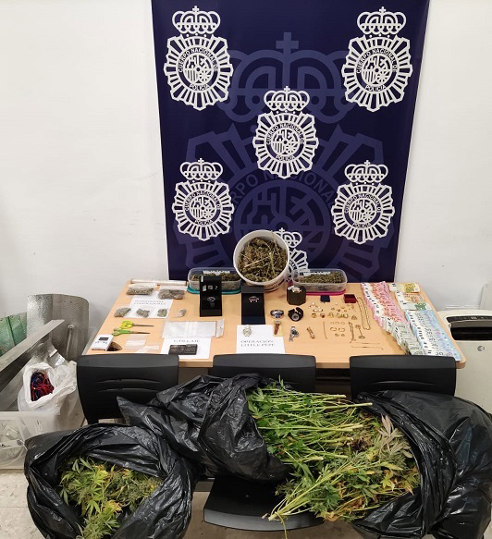 Agentes de la Policía Nacional han desmantelado una plantación de marihuana instalada en una vivienda de un barrio de la zona centro de Málaga, que servía además de punto de venta de la droga. Los agentes se han incautado de 97 plantas de marihuana, 500 gramos de la sustancia en cogollos, 1.660 euros y diversas joyas.