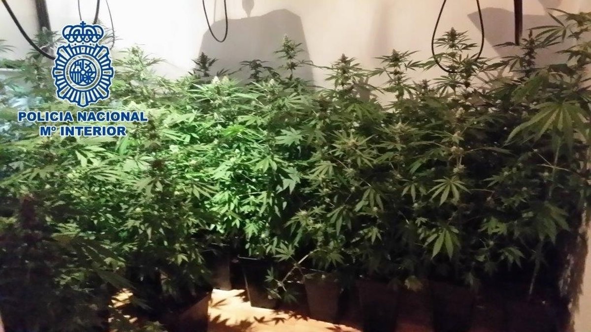 Agentes de la Policía Nacional han desmantelado una plantación de marihuana en el interior de una vivienda de la zona norte de la Málaga capital, donde se han incautado de 120 macetas de esta sustancia en avanzado estado de floración.