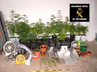 En una de estas viviendas, los guardias civiles encontraron un laboratorio preparado con todo el material específico para el cultivo de esta sustancia psicotrópica, interviniendo, además, 44 plantas de marihuana.