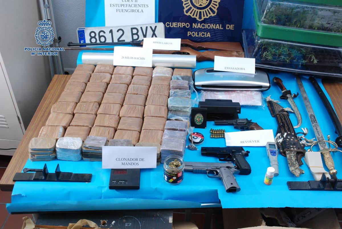 También se han intervenido un revólver detonador, dos pistolas que resultaron ser simuladas, dos escopetas de aire comprimido, munición, dos vehículos, útiles para el corte y envasado de la droga y gran cantidad de material eléctrico utilizado para el cultivo de marihuana.