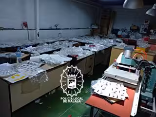 Efectivos del Grupo de Investigación y Protección (GIP) de la Policía Local de Málaga han localizado un taller clandestino dedicado a la distribución de prendas de ropa y mochilas a las que adherían pegatinas 'transfer' de marcas registradas para su falsificación.