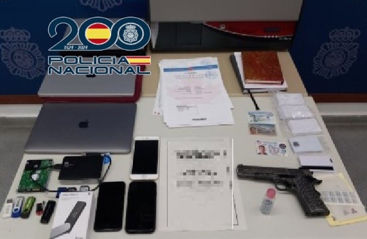 En el domicilio del arrestado se ha intervenido documentación relacionada con la actividad ilícita como por ejemplo, una caja de un soporte "ledger" que evidenciaría el proceder con la "billetera", ordenadores portátiles, tabletas electrónicas, tres teléfonos móviles, disco duro, memoria externa, una impresora de tarjetas y soportes para la misma, una pistola de aire comprimido, además de ropa y complementos de marcas de lujo que evidenciaban su alto nivel de vida.