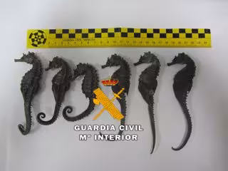 En el momento de la detención portaban 7,12 kilogramos de caballitos de mar disecados sin que pudieran acreditar su procedencia o adquisición y que pretendían vender por una cantidad cercana a los 10.000 euros.